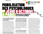 MOBILISATION DES PSYCHOLOGUES À PARIS JEUDI 9 OCTOBRE 13h30 devant le Ministère[...]